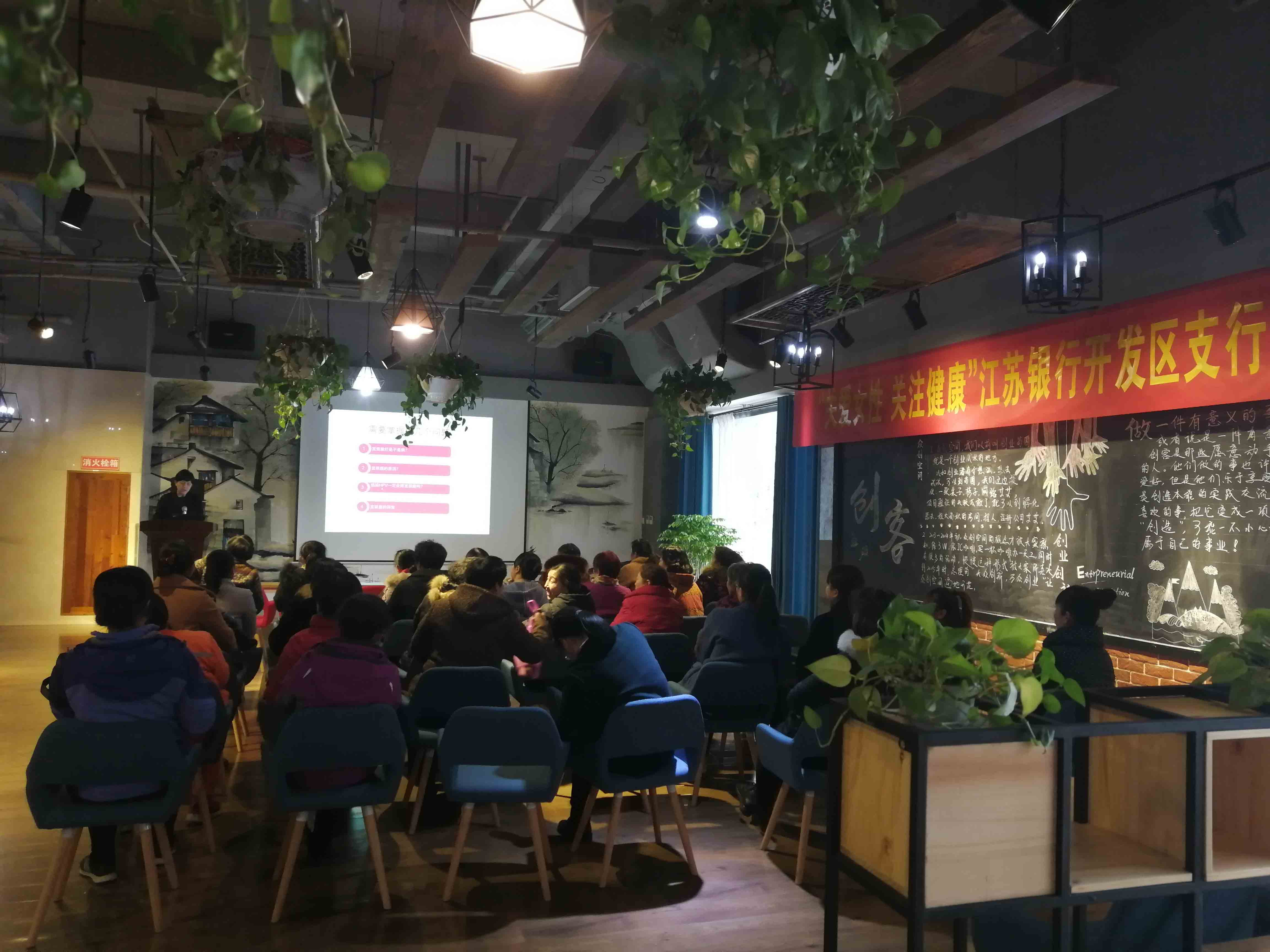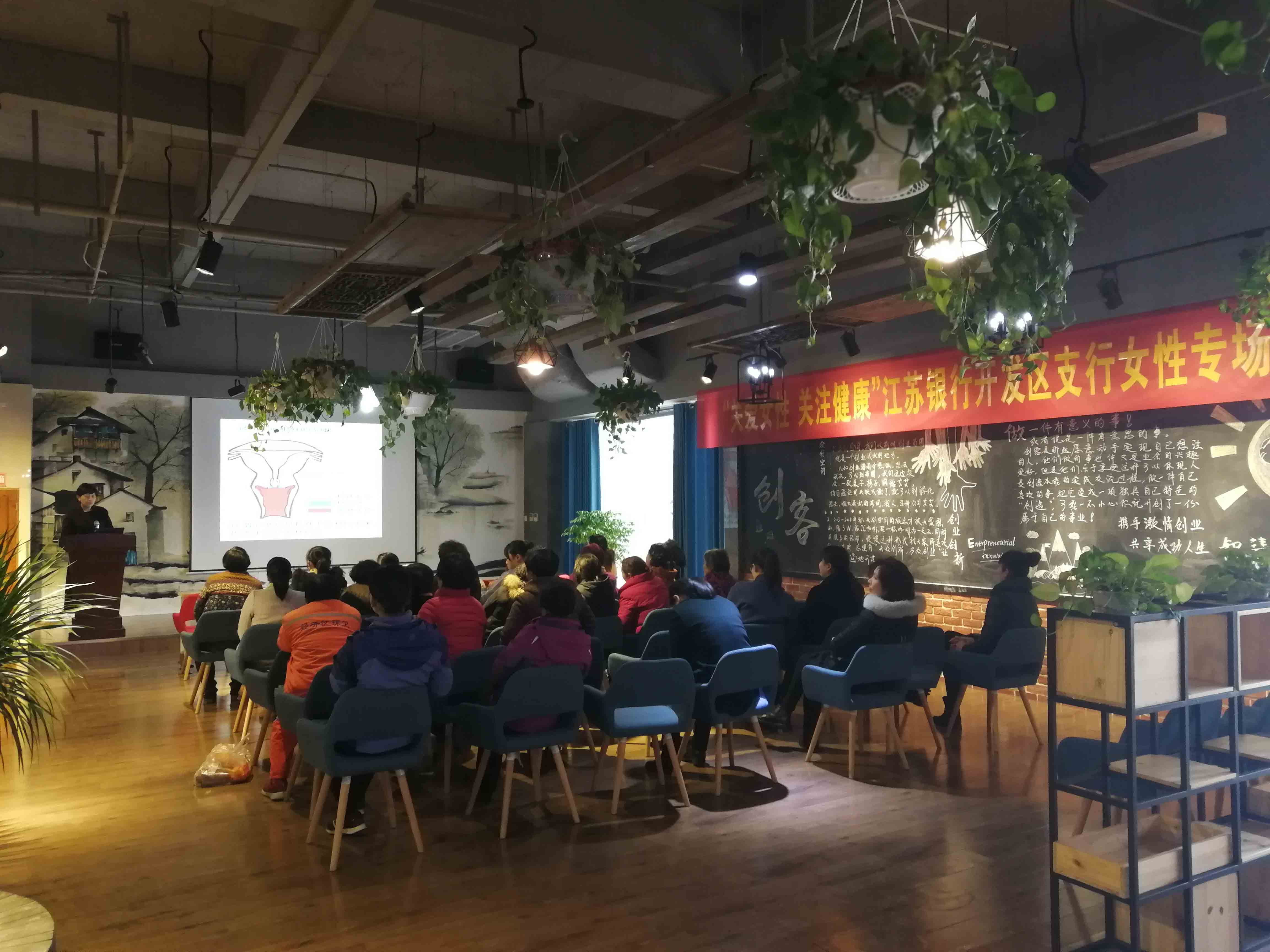 为迎接妇女节的到来,2019年3月8日下午,西交大宿迁科技园携手江苏银行开发区科技支行在一楼众创空间举办了一场“关爱女性 关注健康”专题活动,活动邀请到钟吾医院的妇产科智主任,带领来自园内各企业的女神们学习相关卫生知识。