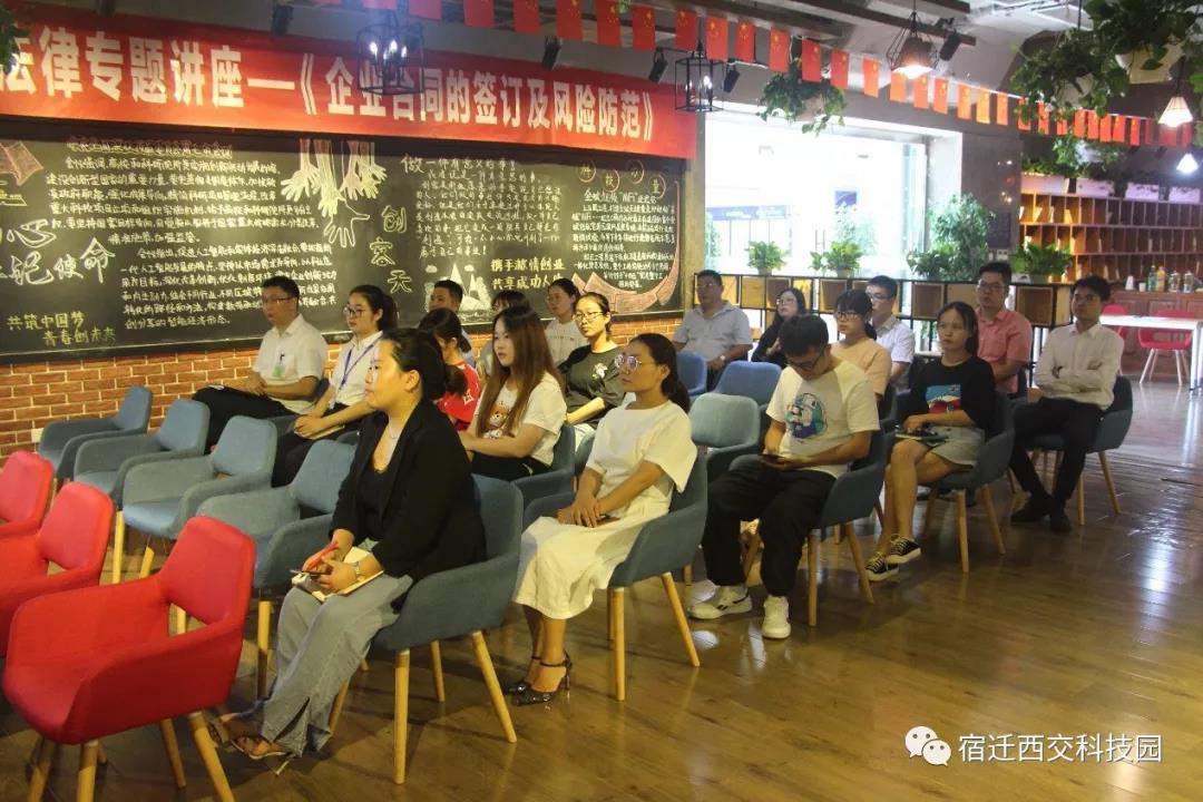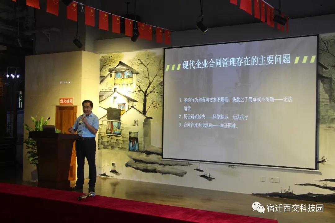 为了进一步规范企业管理,维护自身权益,2019年9月11日下午,西交大宿迁科技园特邀江苏高来达律师事务所主任、宿迁市律师协会副会长、宿迁市政协委员、宿迁市仲裁委员会仲裁员王咏江律师来我园“西楚创客”众创空间开展关于“企业合同的签订和风险防范”的法律知识讲座,来自经开区以及西交大宿迁科技园的二十多家企业出席此次活动。