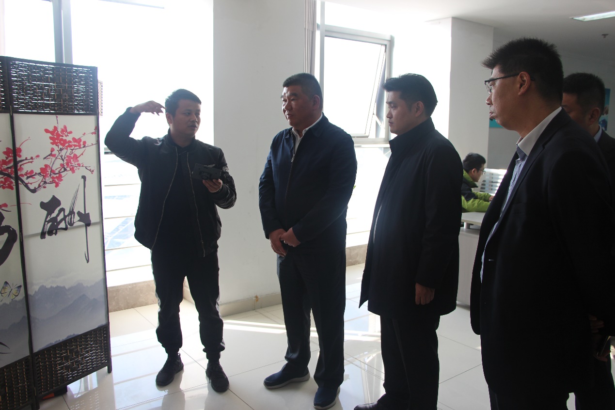 随后,顾主任陪同张常委一行共同参观了园内企业宿迁艾瑞斯生物科技有限公司、江苏光泽信息科技有限公司、江苏傲领科技发展有限公司,张常委详细询问了每家企业的主营业务以及发展情况,并提出相关意见。