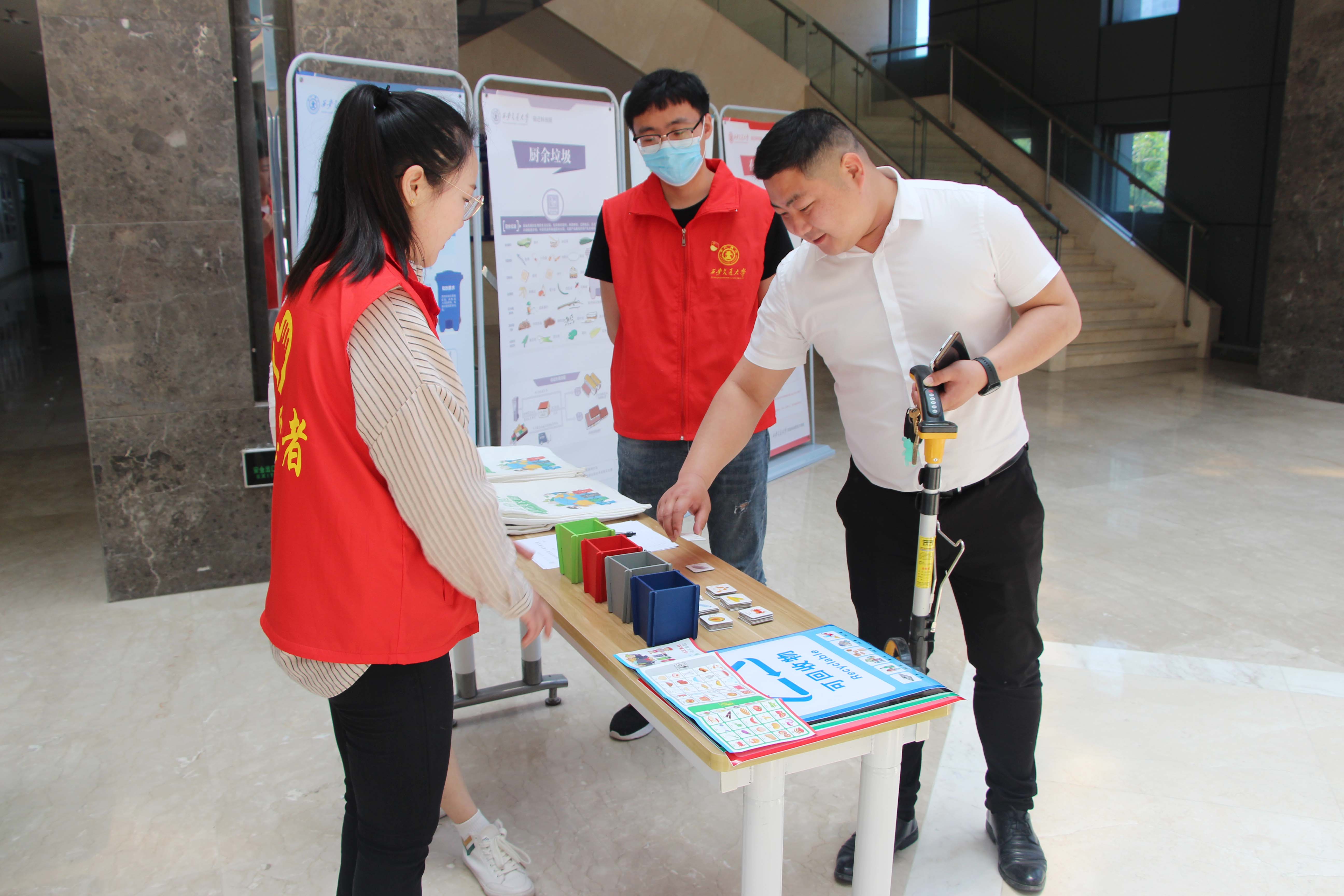 为深入推进生活垃圾分类工作,提高居民生活垃圾分类投放质量,让垃圾分类融入居民的日常生活,让大家切切实实地了解垃圾分类,5月19日上午,西安交通大学宿迁科技园在一楼大厅开展了一场垃圾分类宣传活动。