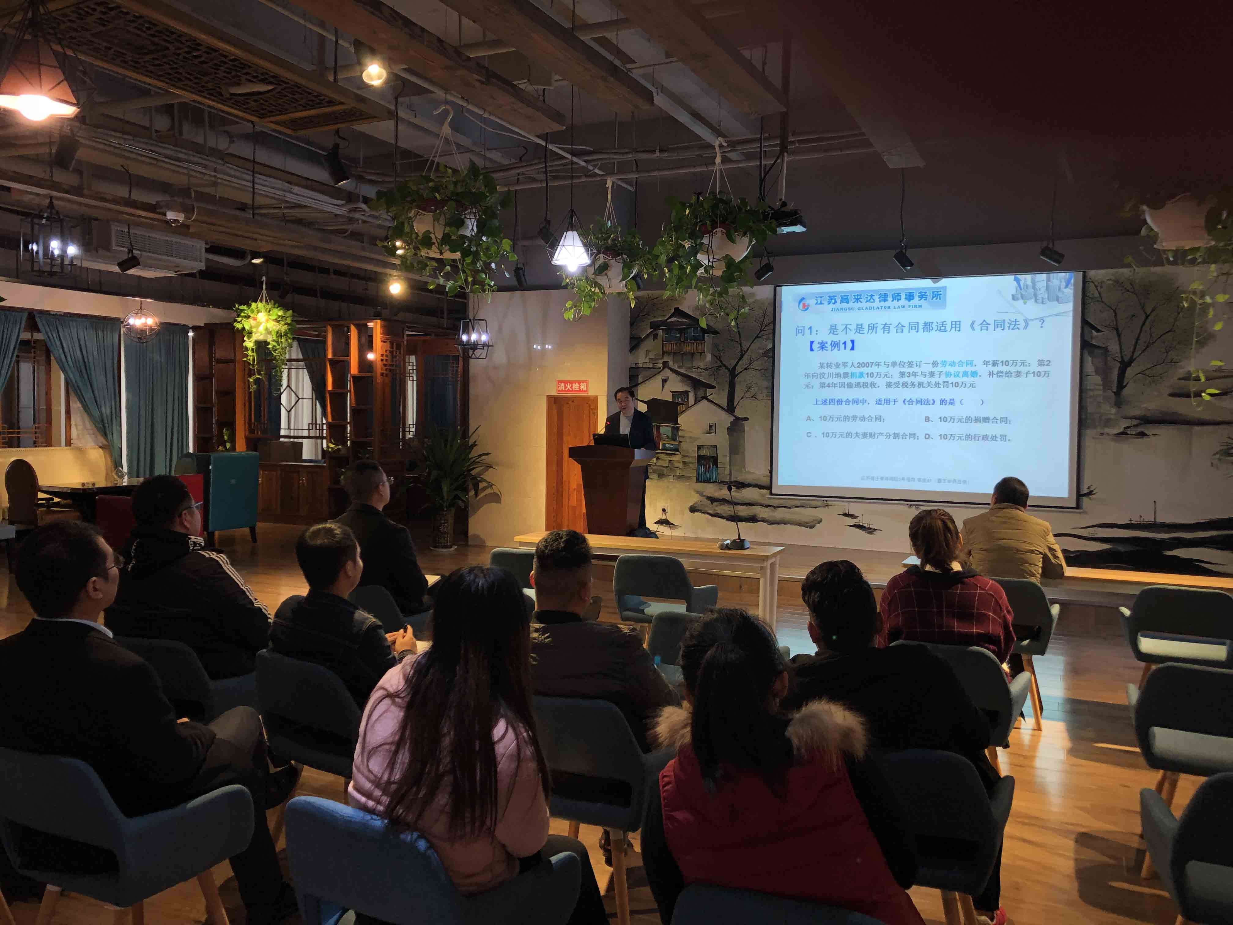 为了进一步规范企业管理,维护自身权益,2018年11月15日下午,西交大宿迁科技园特邀请江苏高来达律师事务所主任、宿迁市律师协会副会长、宿迁市政协委员、宿迁市仲裁委员会仲裁员王咏江律师来我园“西楚创客”众创空间开展《合同法》法律知识讲座,来自经开区以及西交大宿迁科技园的十多家企业出席此次活动。